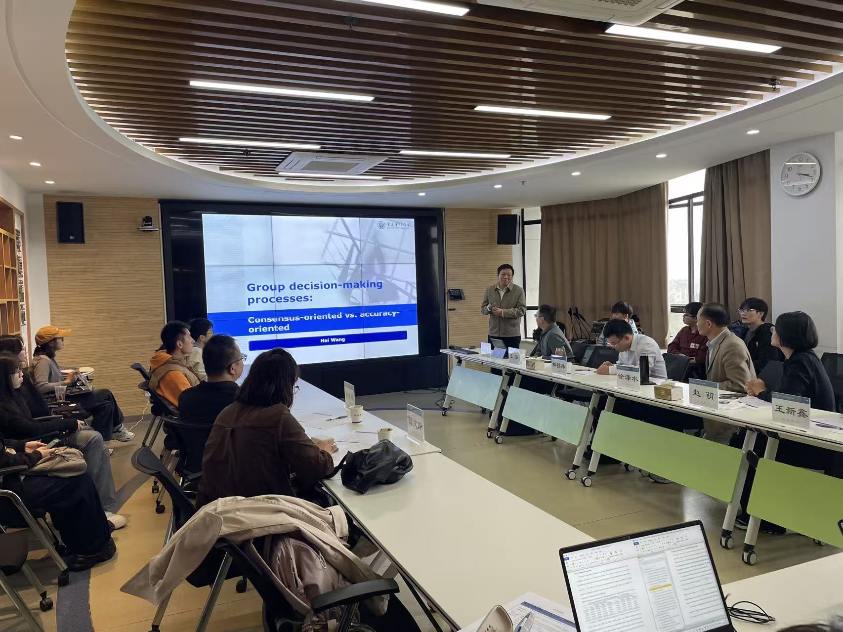 2025年11月7日,南京审计大学王海教授应邀来实验室开展了以“Consensus and accuracy: which should we prefer in group decision-making?”为主题的学术讲座,本次讲座由四川大学郑远航教授主持。